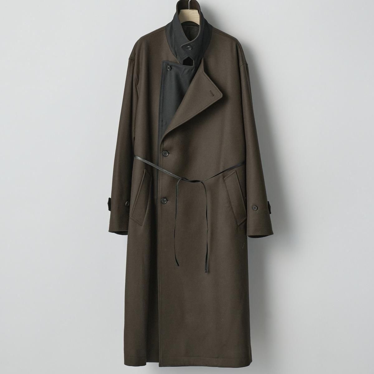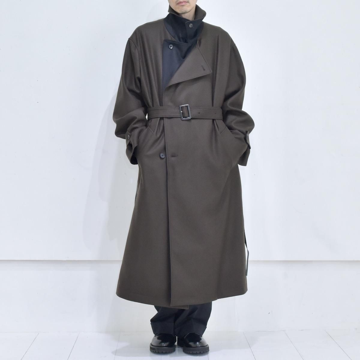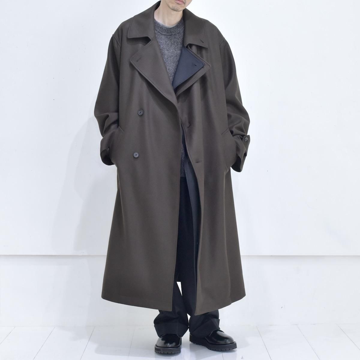 sssteinの象徴的なデザインである2重ラペル仕様のコート"Double Lapeled Double Breasted Coat"。