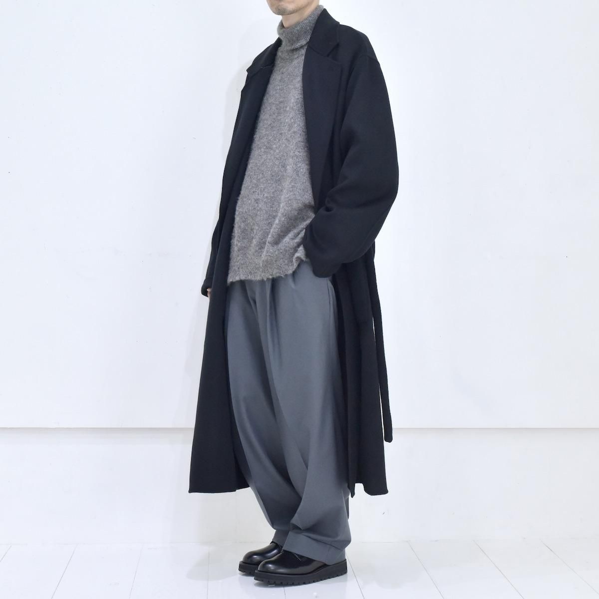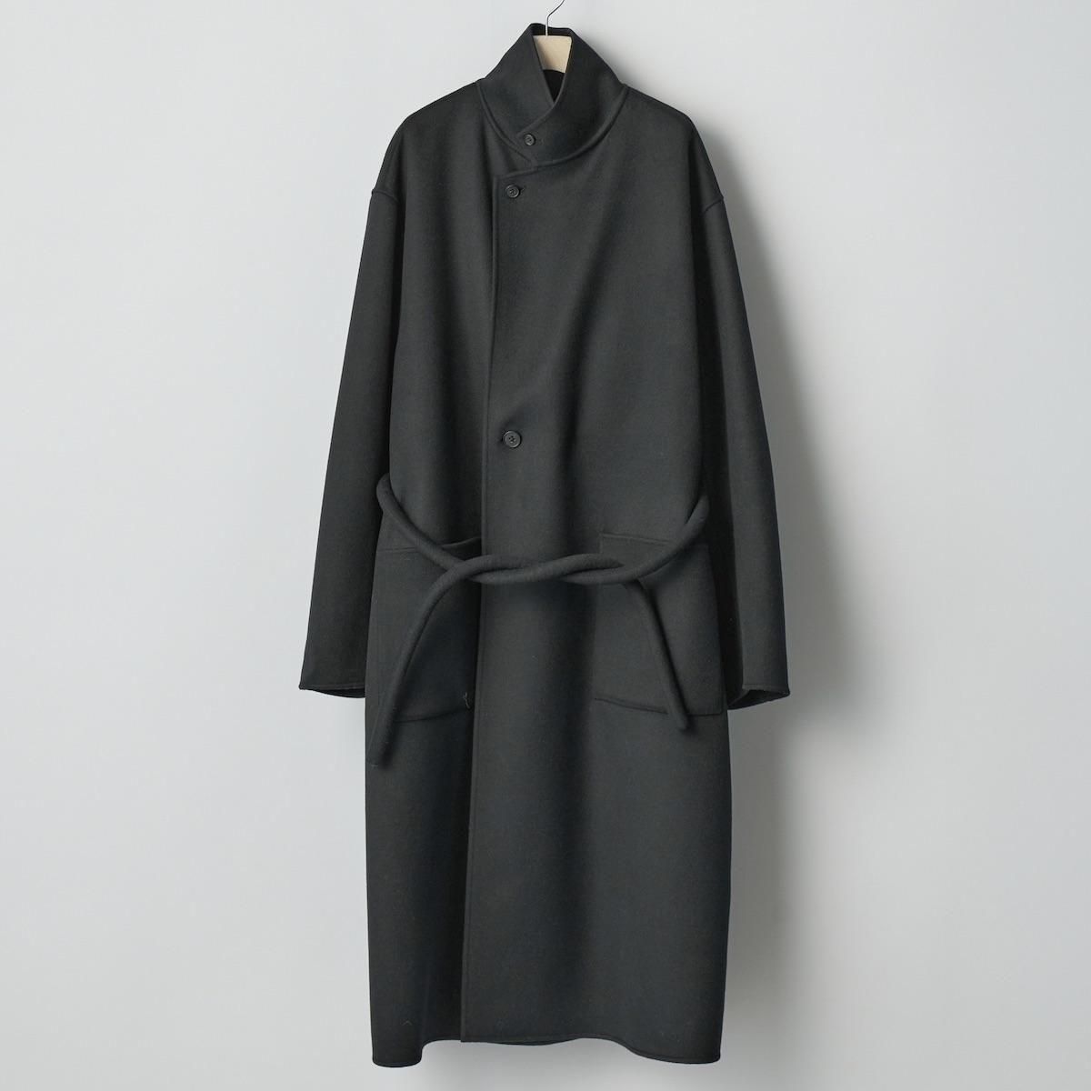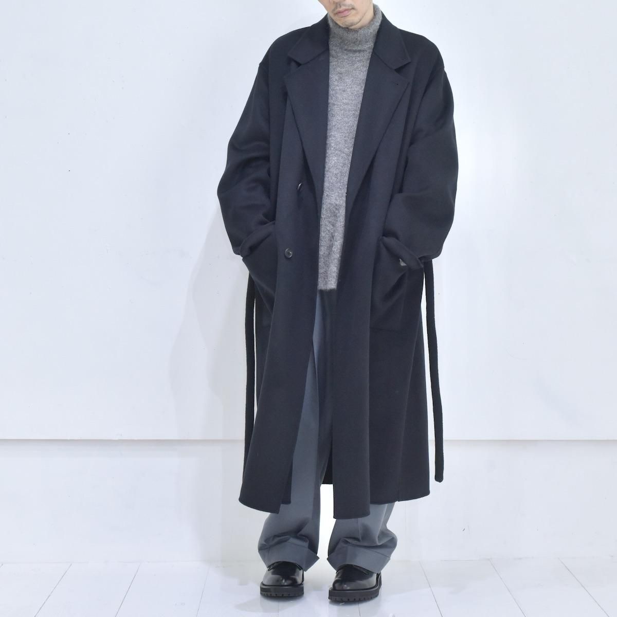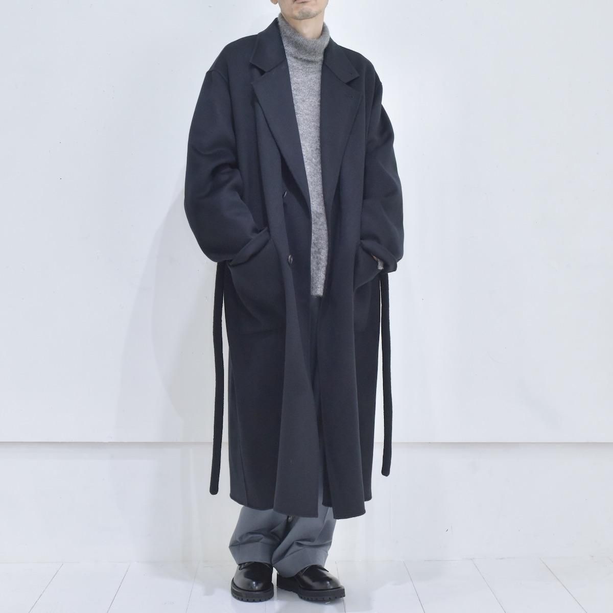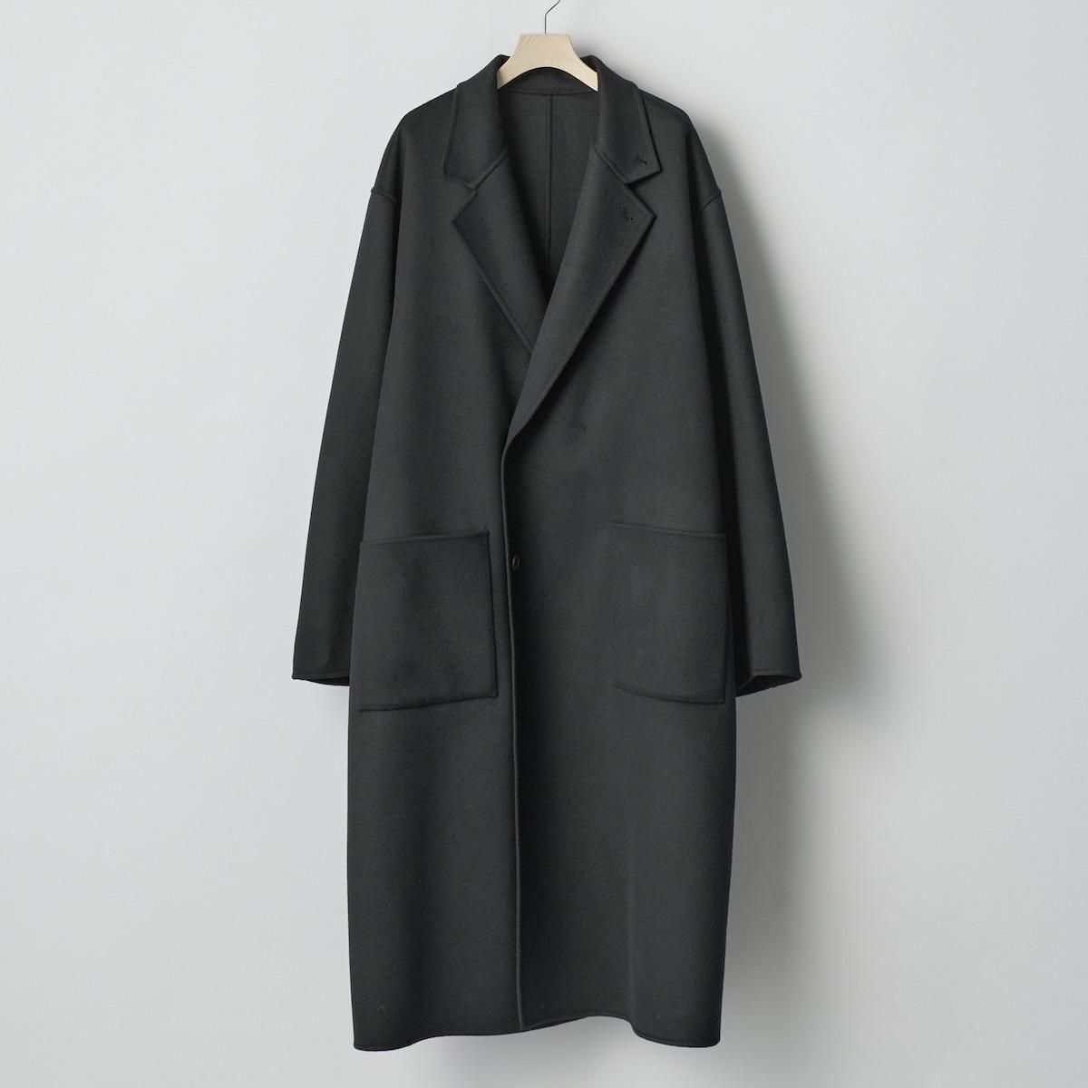 リバー縫製によるダブルフェイスビーバークロスで制作された"Wool Cashmere Reversible Notch Lapel Coat"。