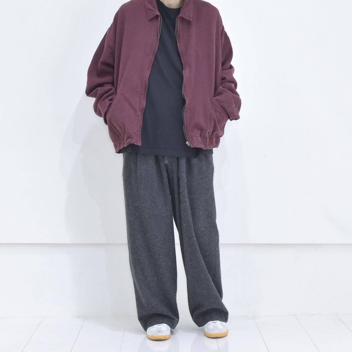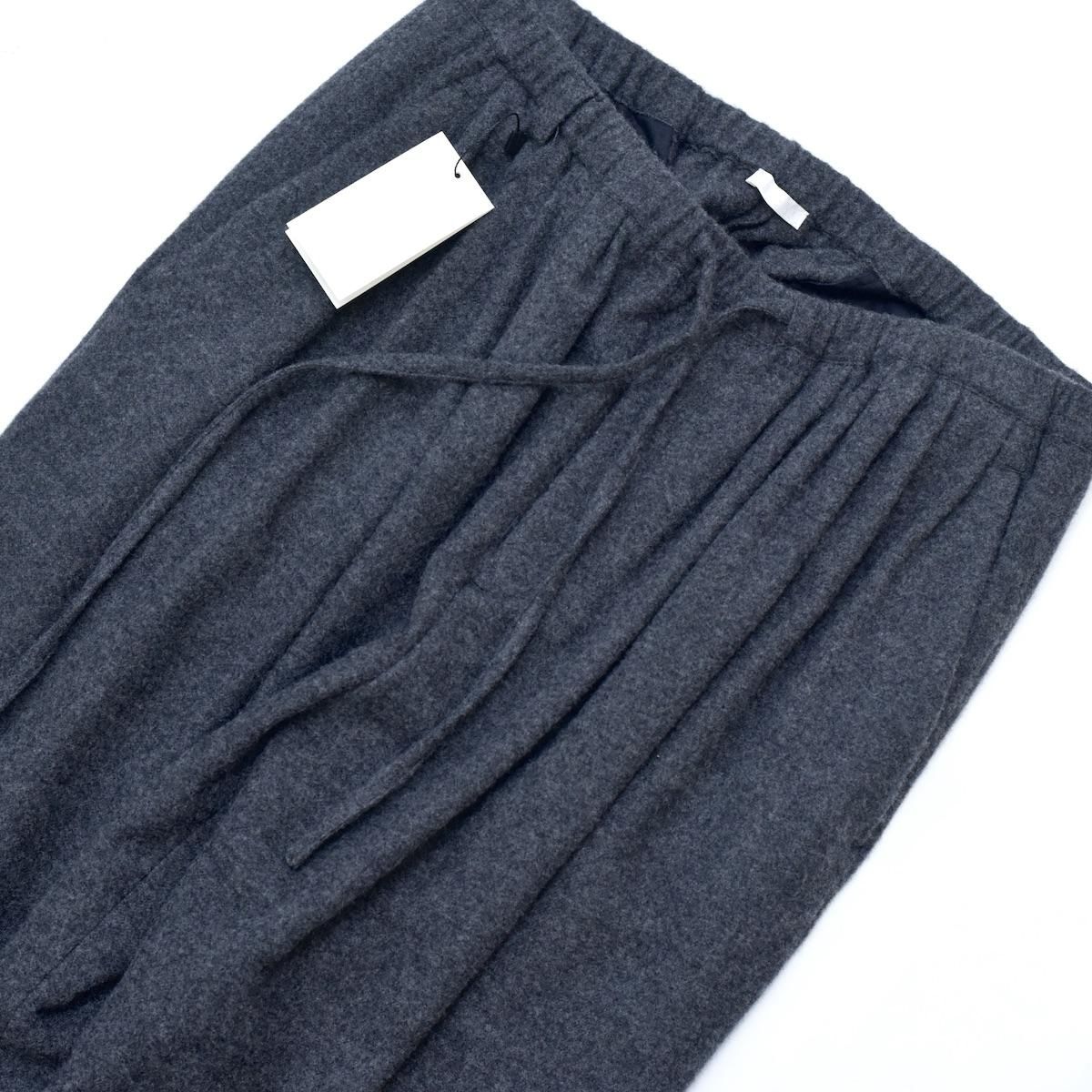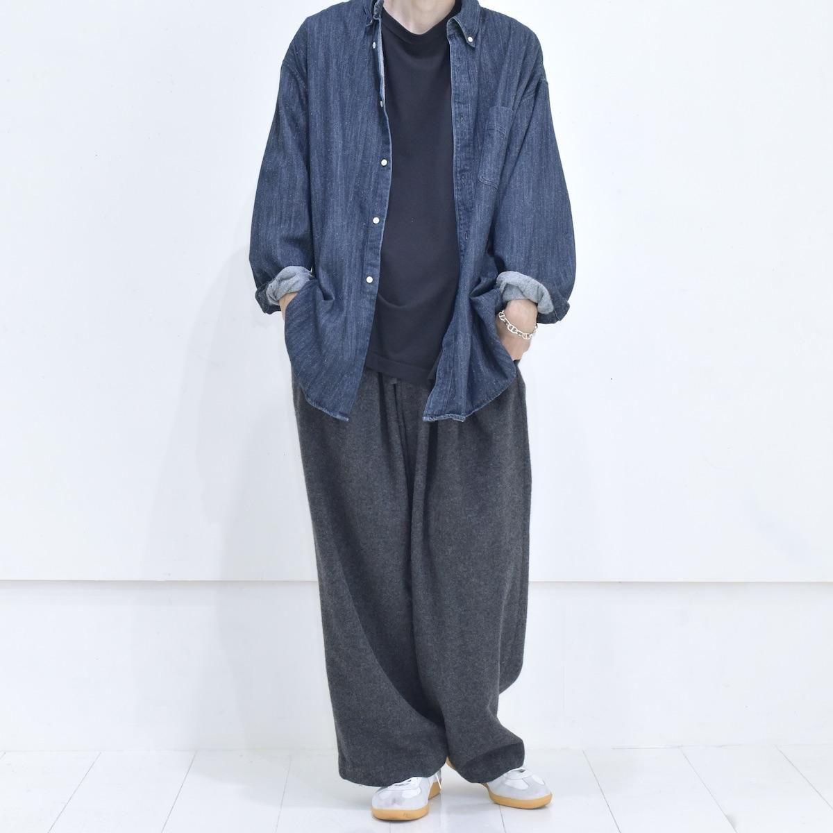 ホワイトカシミアとラムウールを原料とする尾州産のフランネルクロスで制作された"Wide Pants"。
