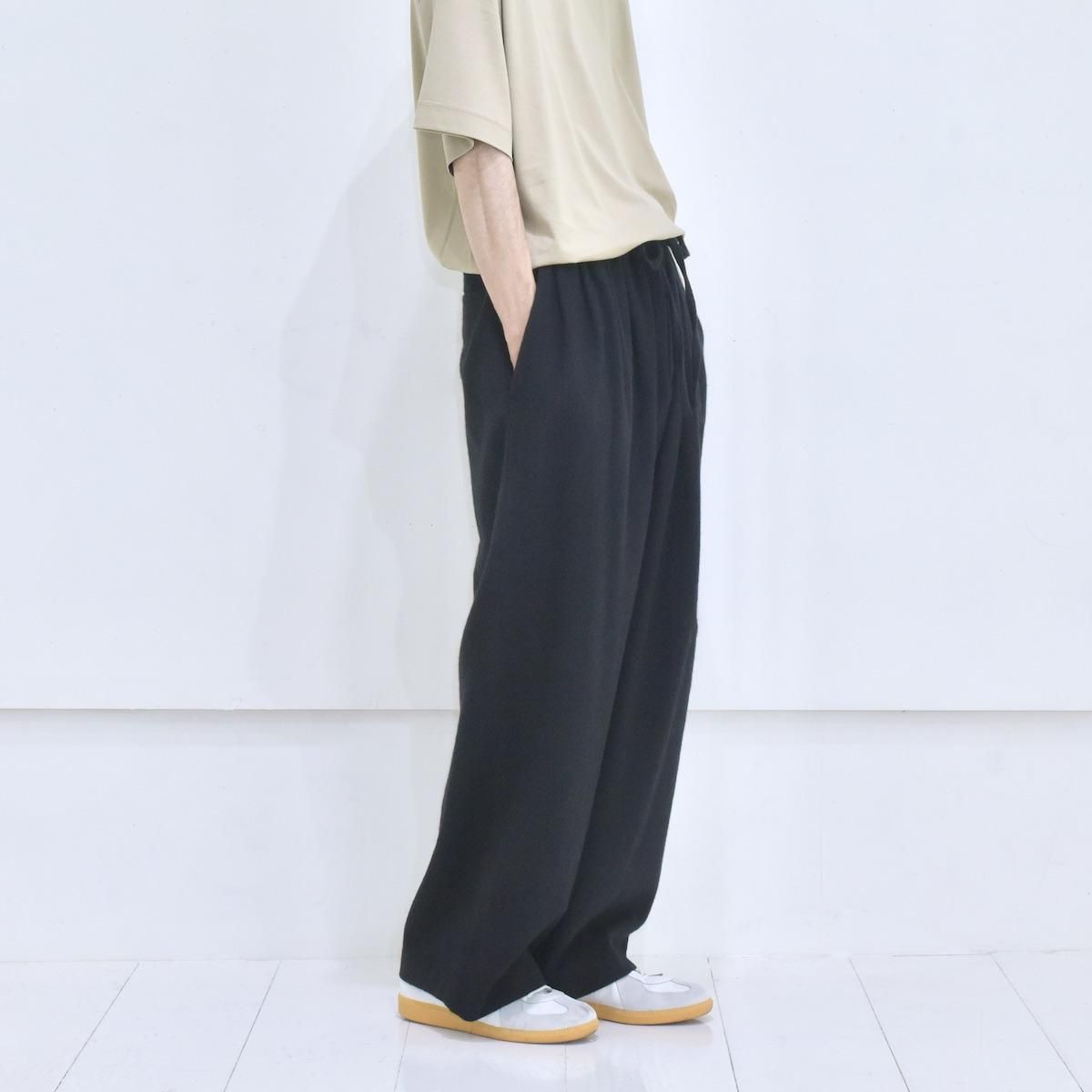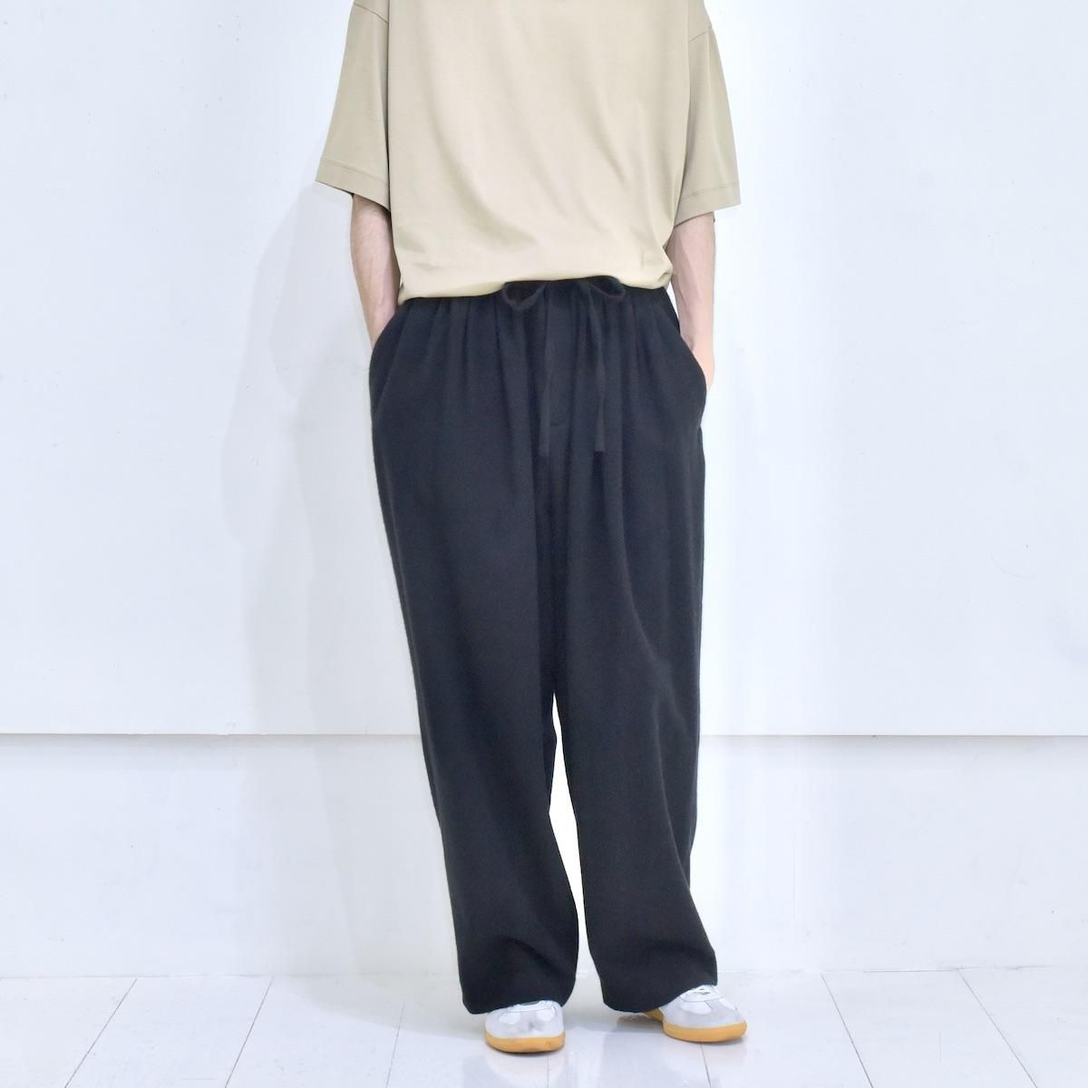 ホワイトカシミアとラムウールを原料とする尾州産のフランネルクロスで制作された"Wide Pants"。