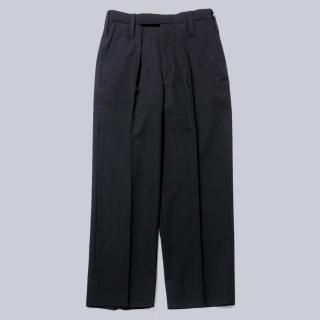 INTÉRIM | Military Wool Serge 1-Tuck French Army Wide Taperd Trousers (Black)
