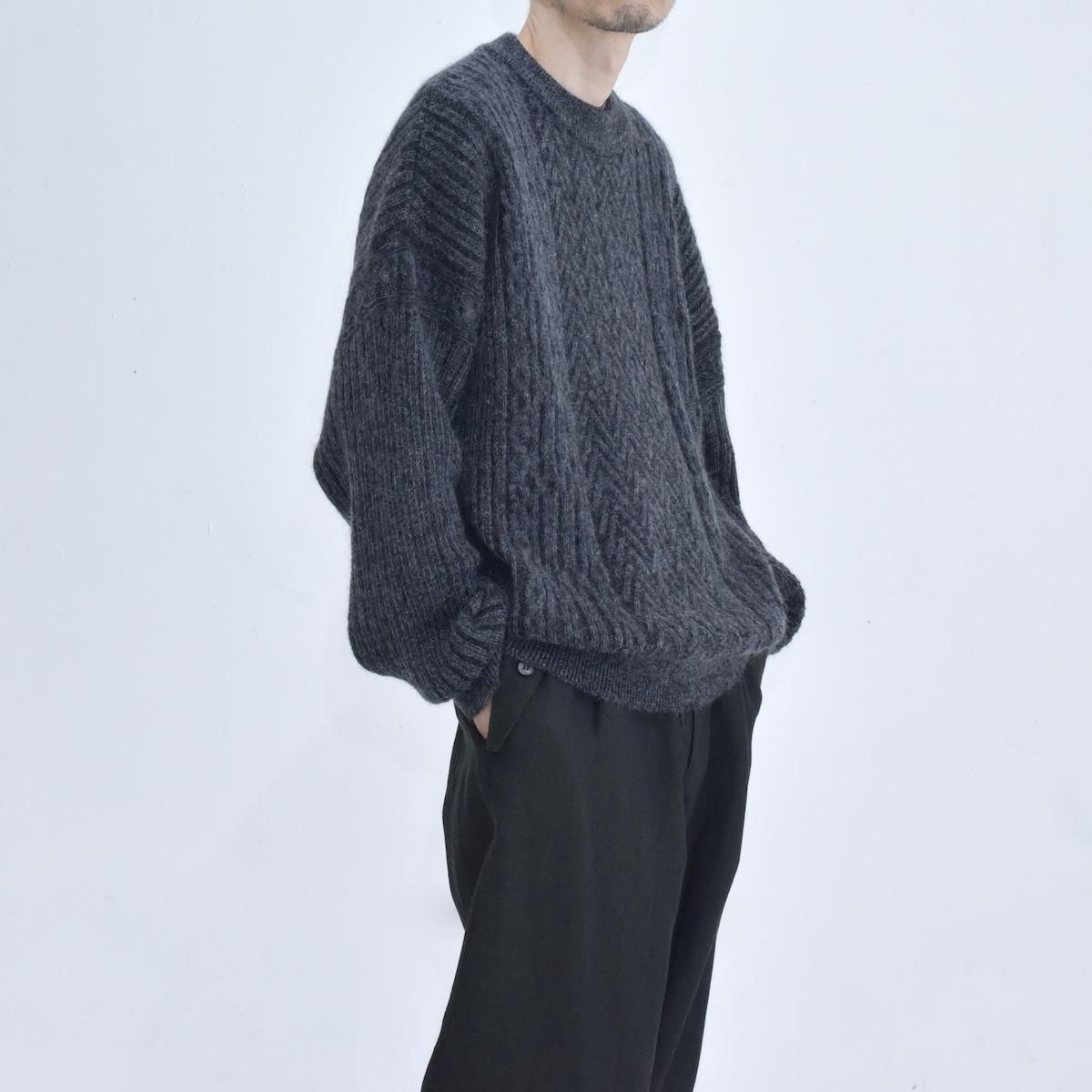 表面と裏面で異なる色の糸を編むぷレーティング編みによって奥行きのある表情に仕上げています。