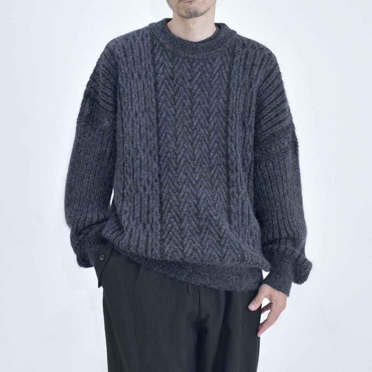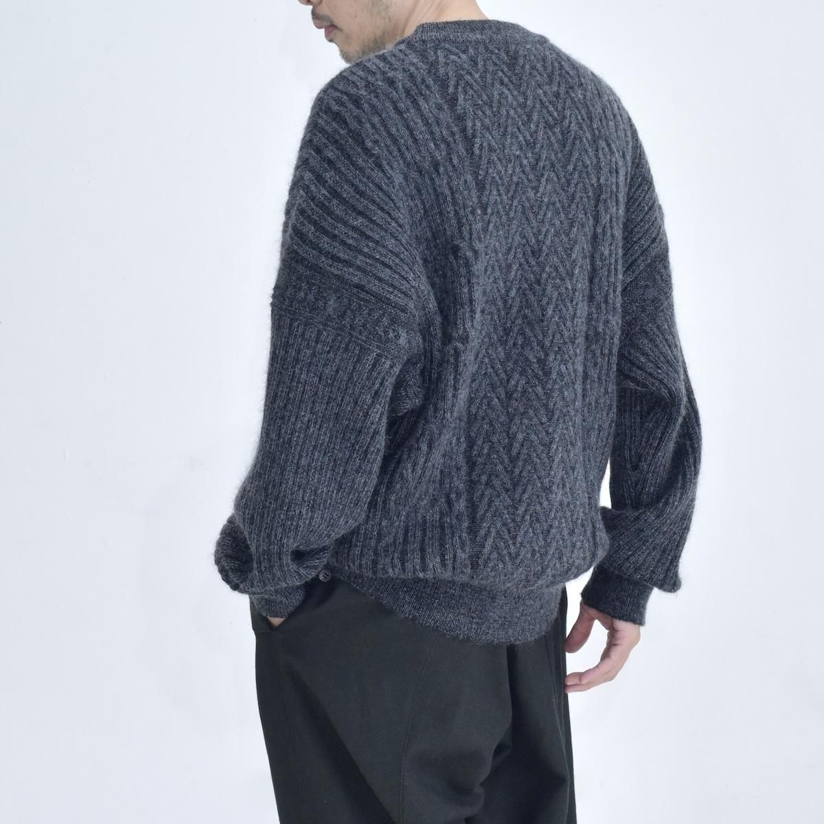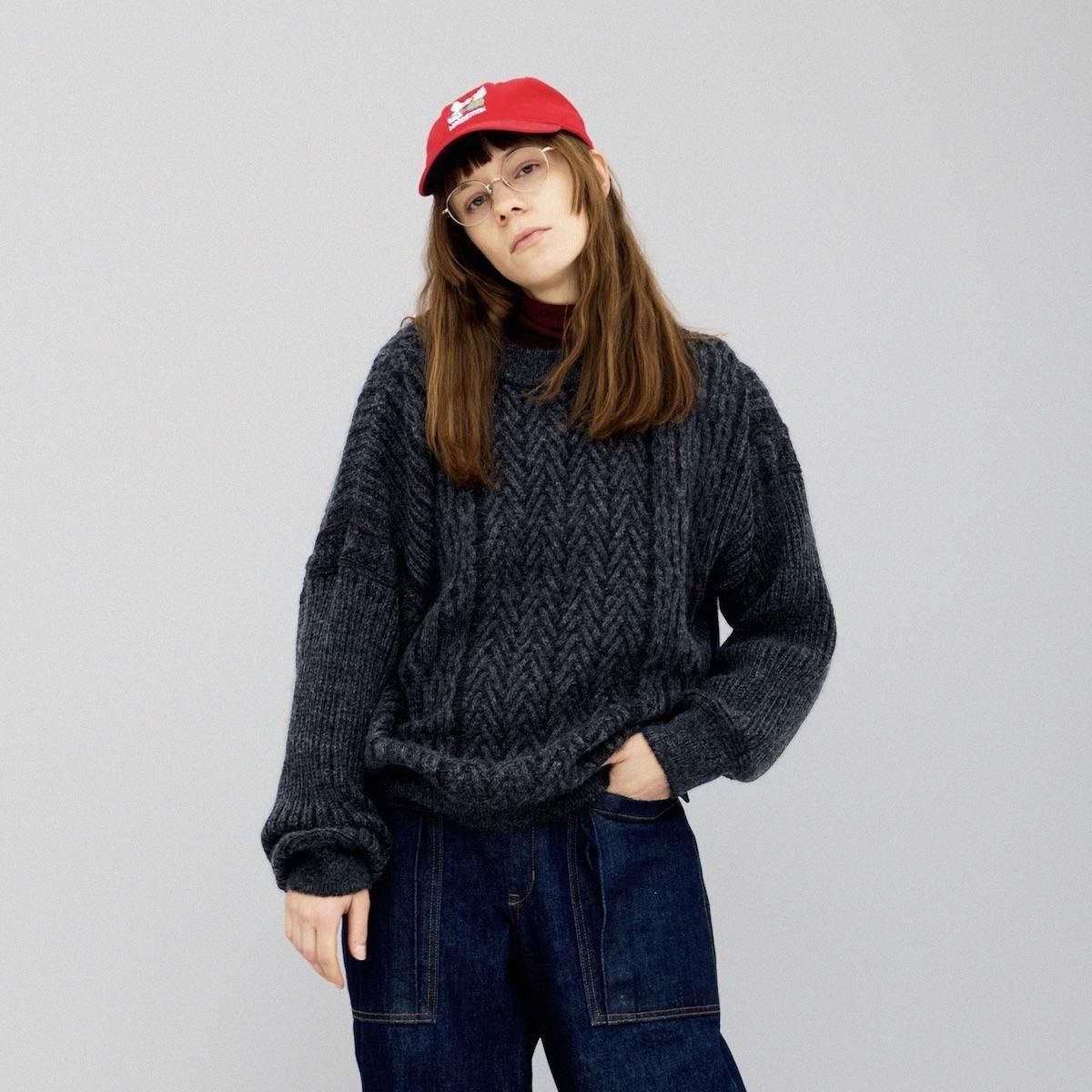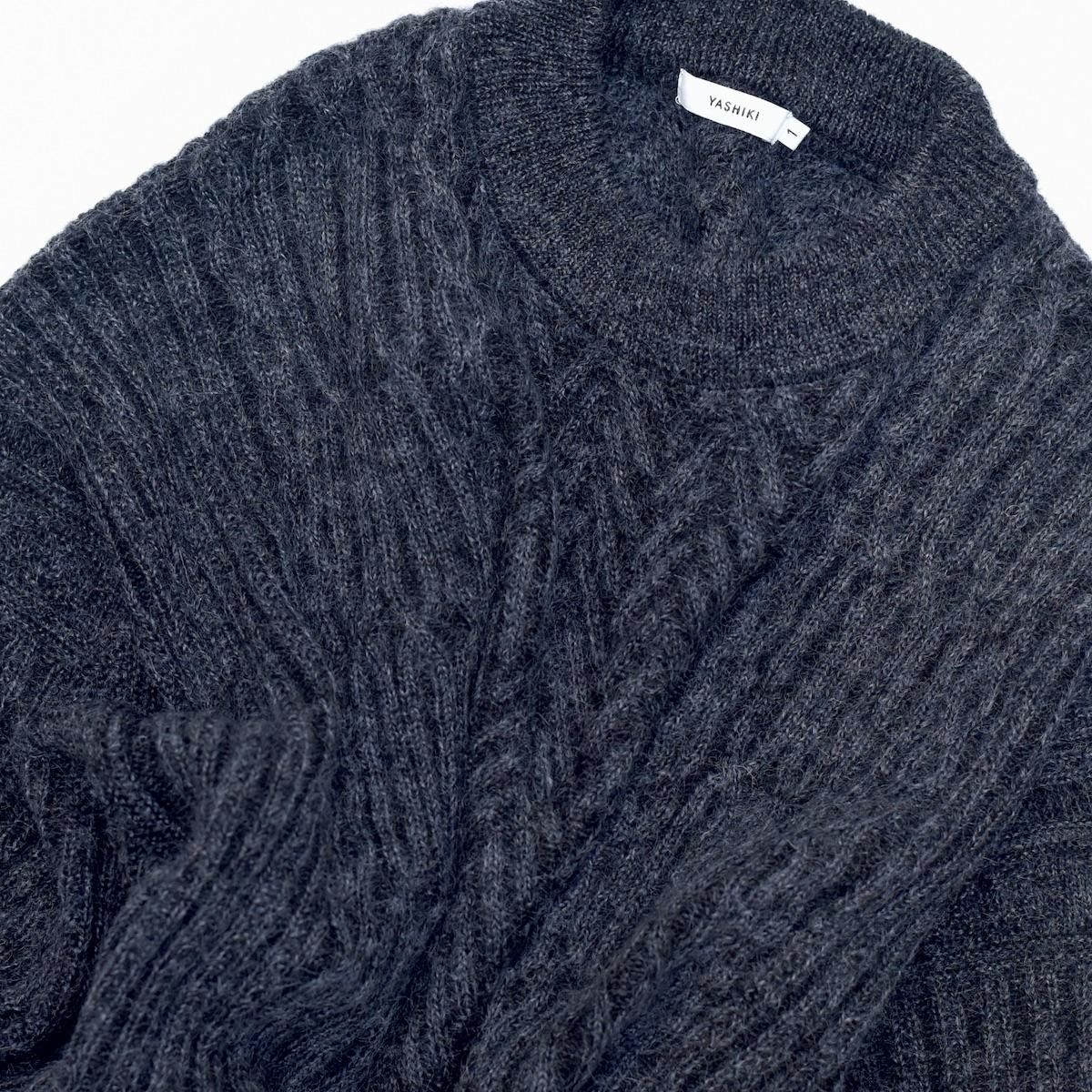 肩の周りにはブランドアイコンである矢絣柄の編み地が入ります。