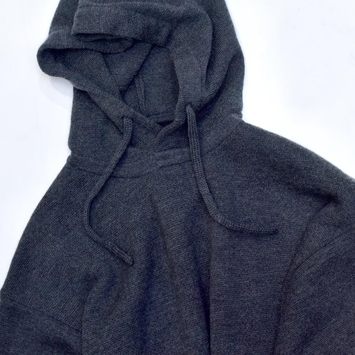 高密度で耐久性に優れたミラノリブニットのプルオーバーフーディ。
