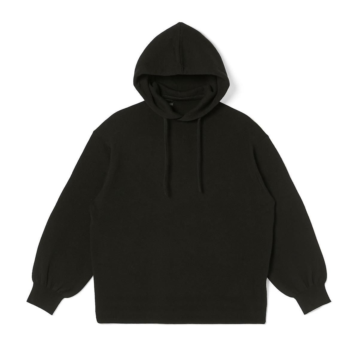高密度で耐久性に優れたミラノリブニットのプルオーバーフーディ。