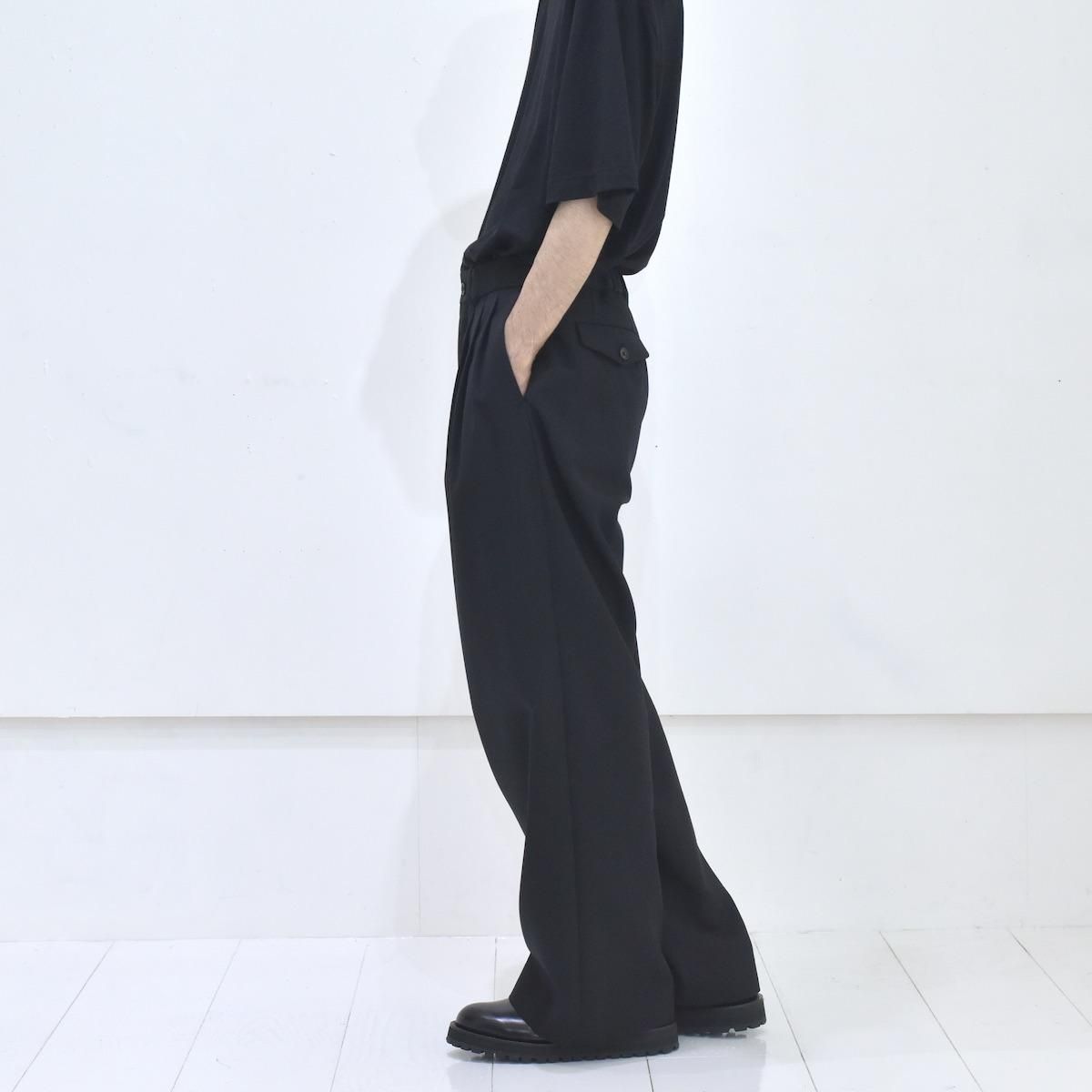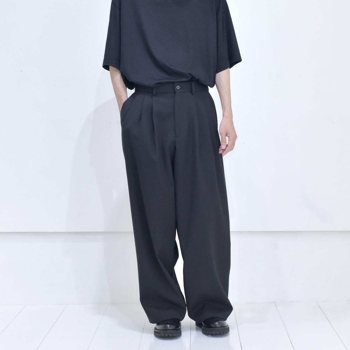 MARKAWARE | Polwarth Tuxedo Cloth Doubel Pleated Wide Trousers (Black)